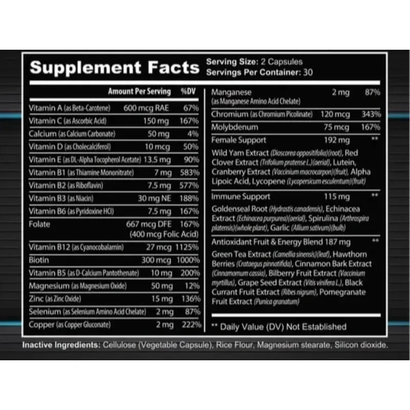 Contains all the vitamins, minerals, and trace elements found in a typical multivitamin